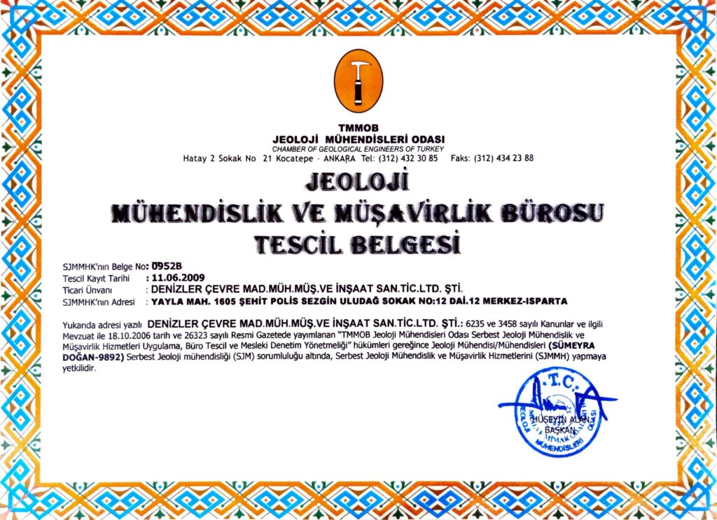 Denizler Çevre; TMMOB Jeoloji Mühendisleri Odası tarafından tescillenmiş yetkili mühendislik ve müşavirlik bürosu olarak, jeoloji ve çevre mühendisliği alanında profesyonel hizmet sunmaktadır.